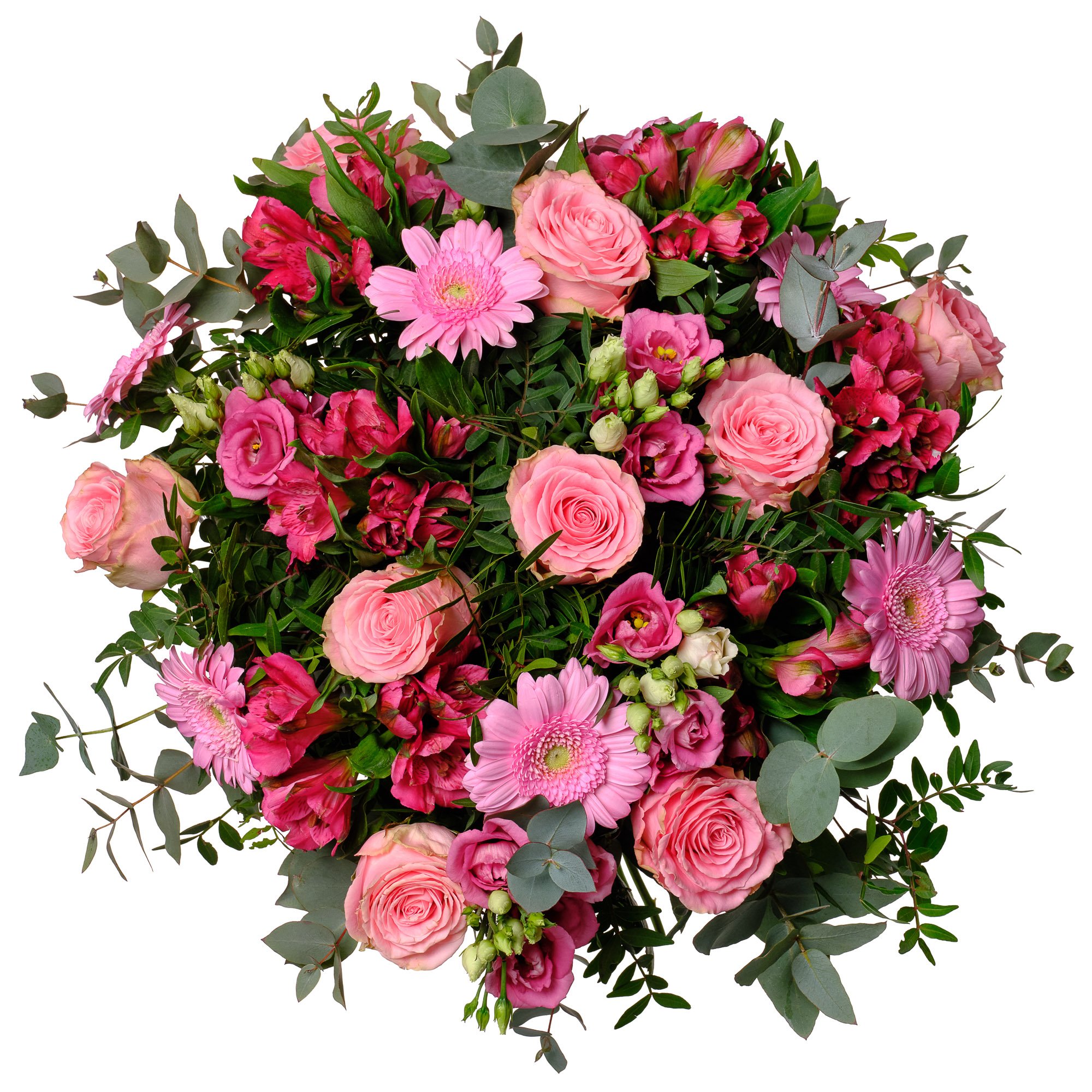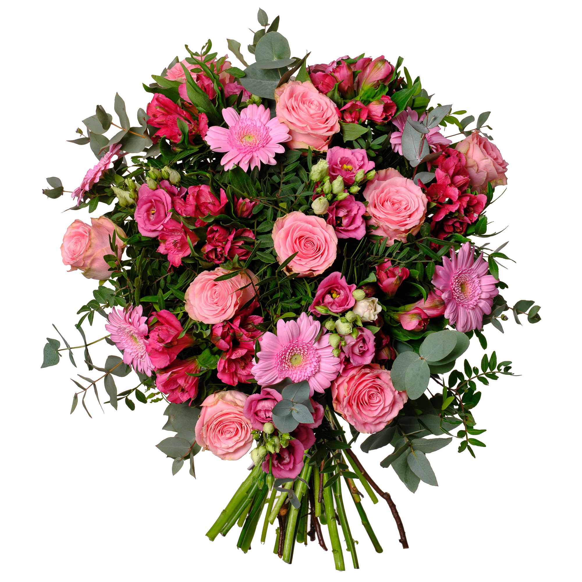 Tato nádherná kytice v růžových a fialkových tónech přináší harmonii a jemnou eleganci do každého interiéru. Kombinace růží, eustomy, alstroemerií a germín vytváří bohatý a svěží dojem, který potěší při každé příležitosti – ať už slavíte narozeniny, výročí, nebo chcete potěšit milovanou osobu. Dekorativní zeleň celkový dojem vkusně dotváří, aniž by narušovala jemnost celé kytice. Doručujeme ještě v den objednávky během pracovních dnů, s možností přesného určení času doručení. Naši zkušení floristé dbají na profesionální úvazek a každý krok realizace probíhá s maximální vstřícností. O doručení vás vždy informujeme e-mailem.