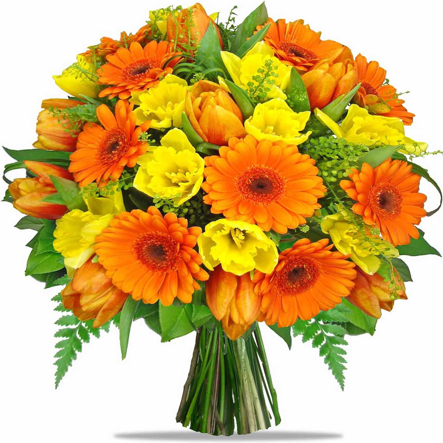 Energická kytice v jasných odstínech oranžové a žluté v sobě spojuje něžné narcisy, svěží tulipány a zářivé germínky. Vše je doplněno nenápadnou sezónní zelení, která květinám dodává lehkost a svěžest. Tento aranžmá vnese radost a optimismus do každého prostoru, skvěle se hodí jak pro gratulaci k narozeninám, tak pro povzbuzení vašich blízkých. Klademe důraz na profesionální uvázání a osobní přístup při předání. Objednávku doručíme ještě v den objednání během pracovních dnů, přičemž si můžete zvolit přesný čas doručení. Na e-mail pak obdržíte potvrzení o doručení, abyste měli vždy jistotu, že kytice dorazila v pořádku.