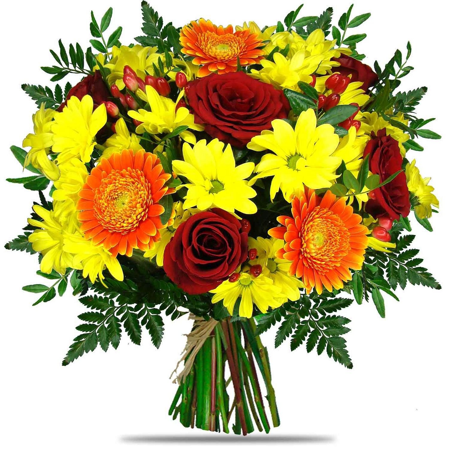 | Standardní | 2 ks chrysantéma, 3 ks růže, 3 ks germína, 2 ks hypericum a dekorativní zeleň |