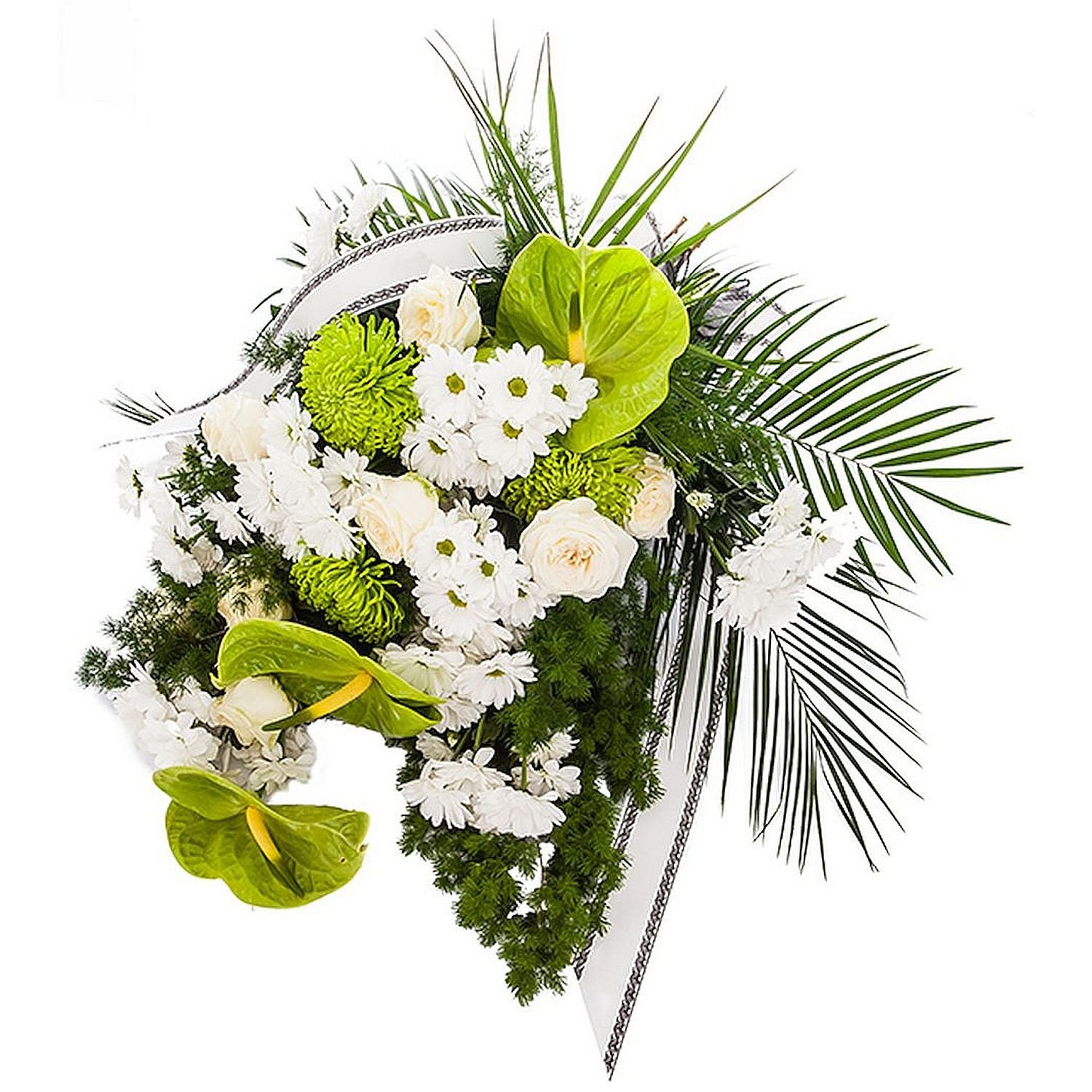 Smuteční kytice z našeho květinářství je citlivě svázaná do decentní kompozice, v níž se střídají světlé tóny květin s jemnou zelení. Výrazné listy a pečlivě zvolené květy vytvářejí elegantní, tichý dojem, který se hodí pro poslední rozloučení. Každý detail je pečlivě promyšlený a zajišťuje přirozenou harmonii celého aranžmá. Vždy vážeme v našem květinářství a doručujeme v den objednávky během pracovních dnů. Nabízíme možnost přesného času doručení a jistotu v podobě potvrzení o doručení e-mailem. Můžeme doručit do obřadní síně, kostela i na místo rozloučení.