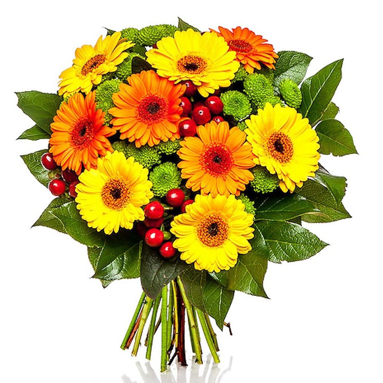 | Standardní | 5 ks gerbera mini, 3 ks santini, 2 ks hypericum a dekorativní zeleň (salal) |
