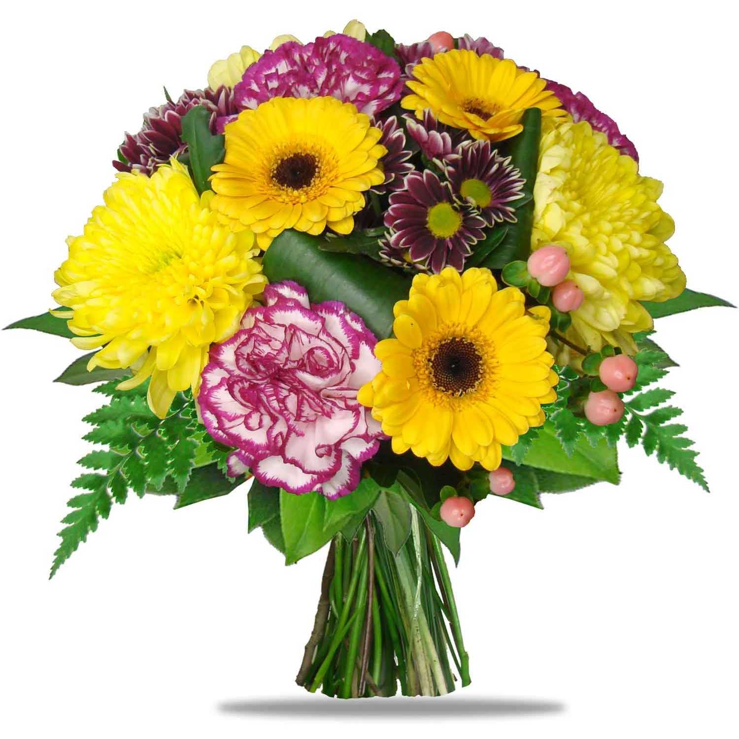 Tato pestrá kytice nás okouzlí živými barvami a harmonickým propojením žlutých chrysanthém, veselých germín i jemně kvetoucích santini. Výrazné karafiáty a elegantní hypericum dodávají celku svěžest a originalitu. Svěží zelené listy pak podtrhují přirozenou krásu celé vazby. Tento květinový výběr působí optimisticky a přináší radost do každého prostoru – báječně se hodí jako dárek k narozeninám, pro radost nebo jen tak pro zpříjemnění dne. Doručujeme v den objednávky během pracovních dnů a umožňujeme výběr přesného času doručení. Potvrzení o doručení posíláme e-mailem. Naši zkušení floristé se postarají o profesionální vazbu i vstřícné služby.