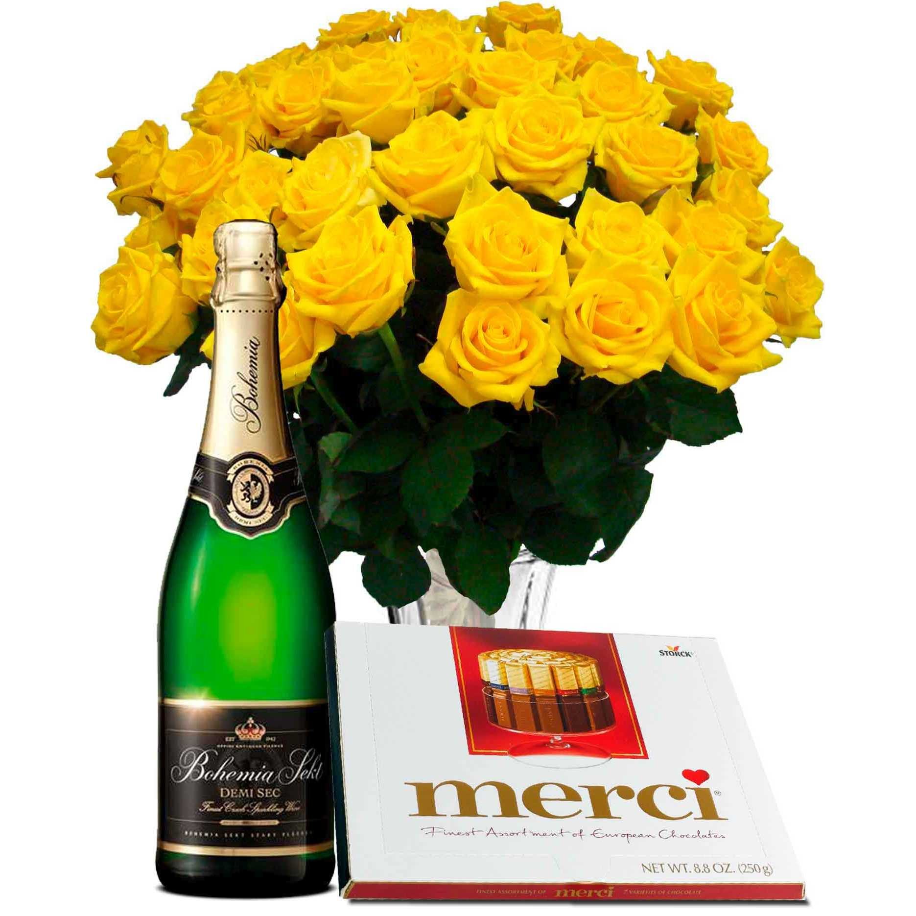 | 25 ks růží, Bohemia sekt a čokoláda Merci |