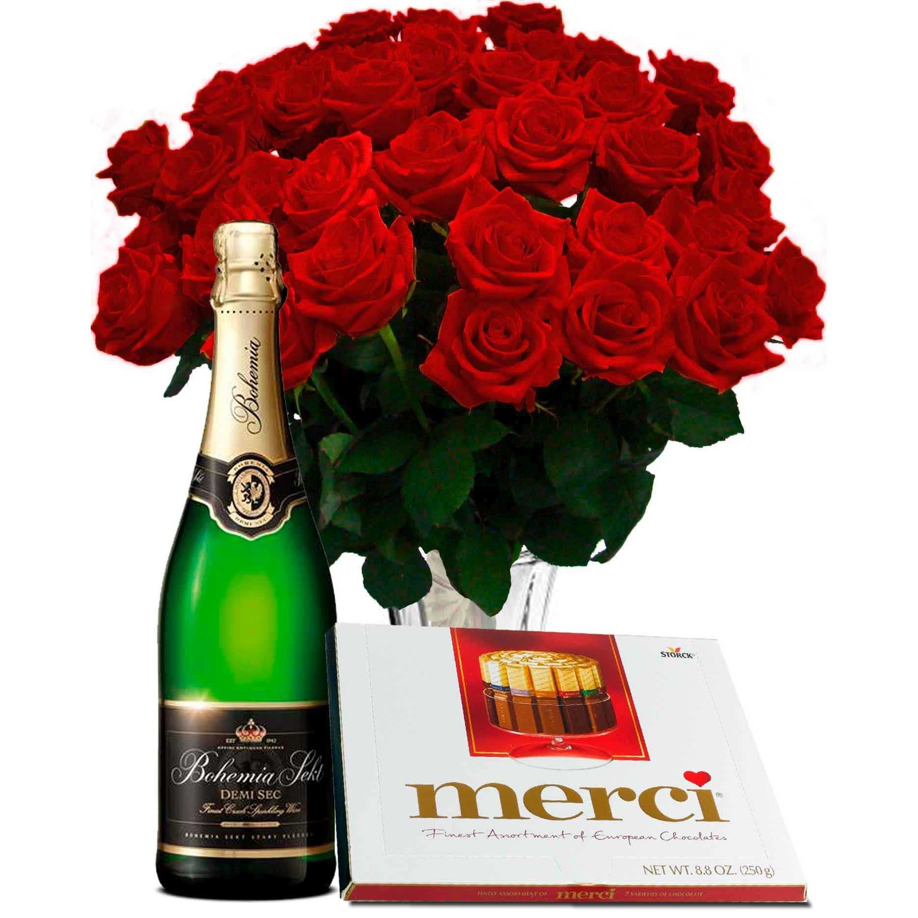 | 25 ks růží, Bohemia sekt a čokoláda Merci |