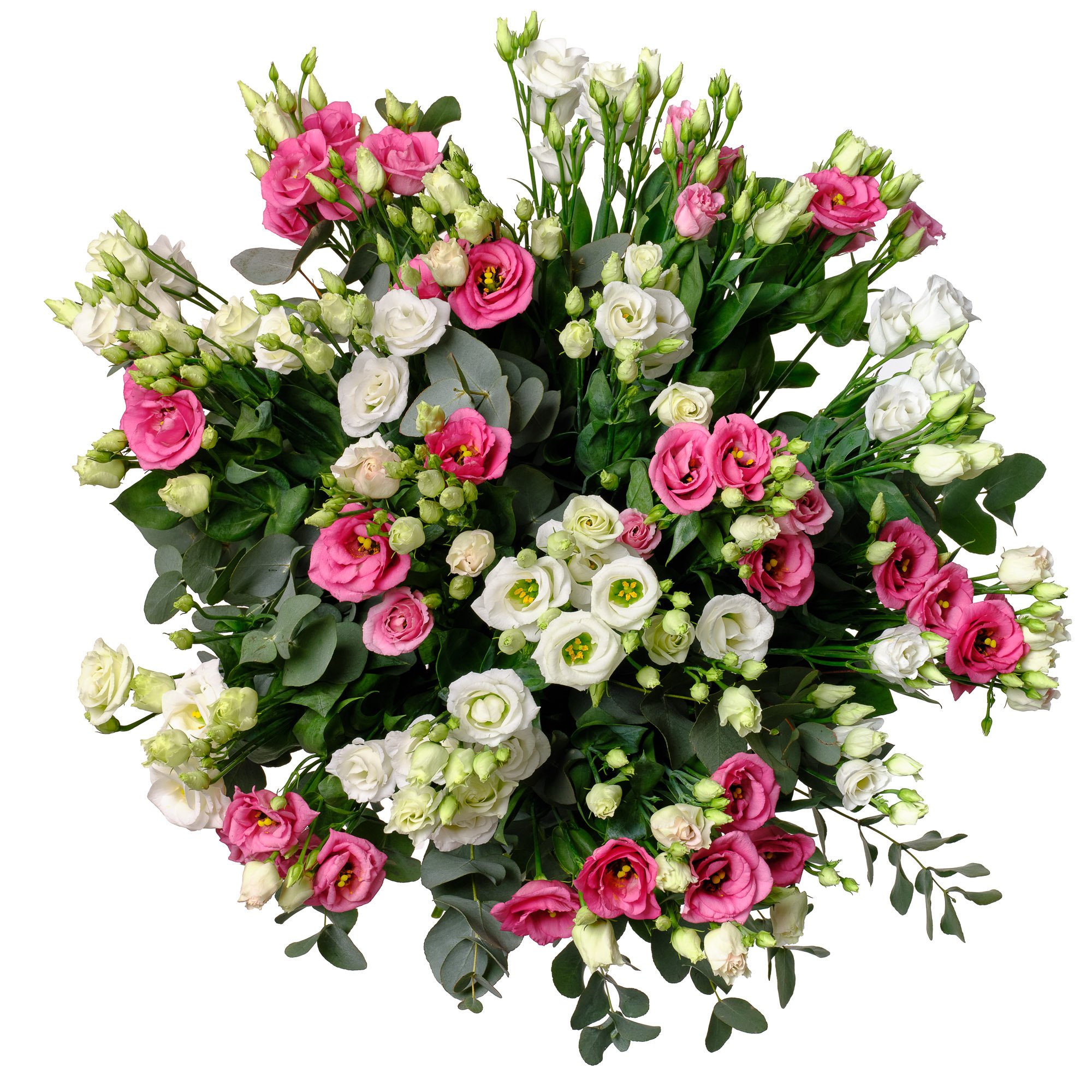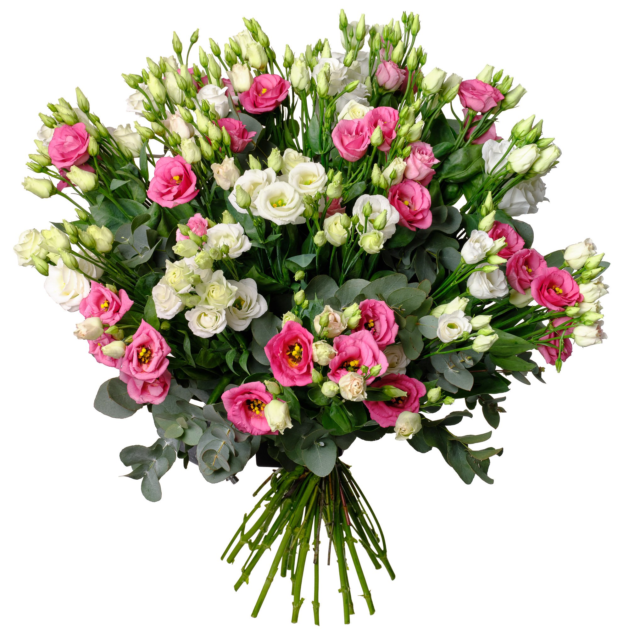 | Exkluzivní | 10 ks bílá eustoma, 10 ks růžová eustoma a dekorativní zeleň (eukalyptus) |
