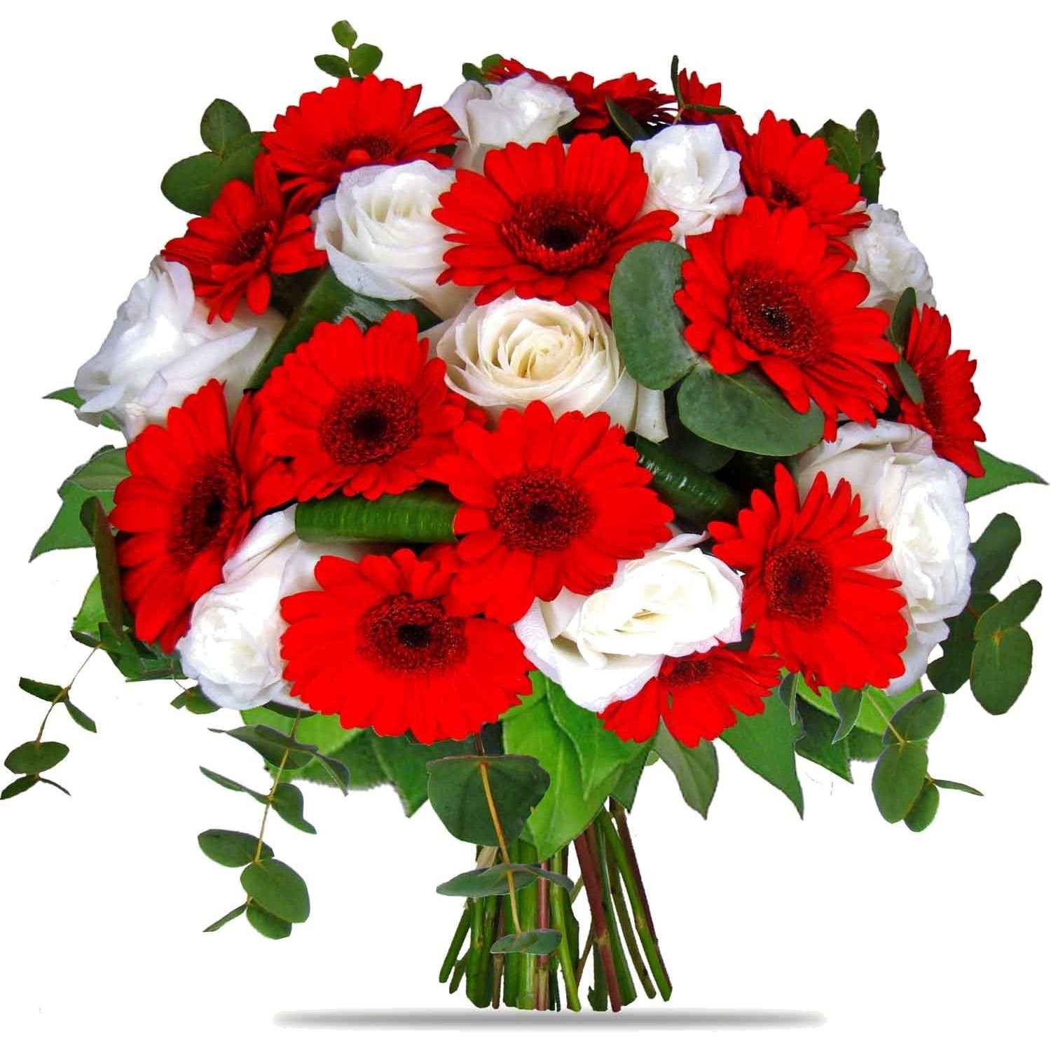Naše elegantní kytice spojuje nádherné bílé růže s jasně červenými germínami. Výsledkem je výrazná, a přitom harmonická kombinace barev, která působí svěže i slavnostně. Jemný eukalyptus a dekorativní zeleň podtrhují přírodní krásu květin a dodávají celé vazbě na lehkosti. Tato kytice je ideálním dárkem pro oslavy, výjimečné okamžiky i jako překvapení pro radost. Vždy doručujeme v den objednávky během pracovních dnů a umožňujeme objednat přesný čas doručení. Zaručujeme jistotu doručení i potvrzení e-mailem, stejně jako profesionálně uvázané květiny od našich zkušených floristek.